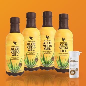 Скористайтеся вигідною пропозицією! Тільки в 13 квітня по 30 червня супер-набір – 4 пляшки Форевер Гель Алое Вера + Форевер Ектів Про-Бі можна придбати зі знижкою 10%. Комбінація натурального гелю Алое Вера та корисних бактерій, що містить Форевер Ектів Про-Бі, має ще більший оздоровчий ефект для організму завдяки синергії обох продуктів.